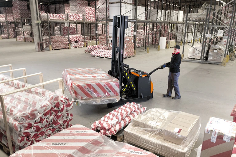 Bir istifleyicinin kompaktlığını bir reach turk makinesinin esnekliğiyle birleştirmek, herhangi bir palet türünü işleyebilen çok yönlü bir çözümle sonuçlanır. Bu yaya istifleyicisi dar koridorlarda kullanım için idealdir, depolama alanı ve maliyetlerden tasarruf sağlar.